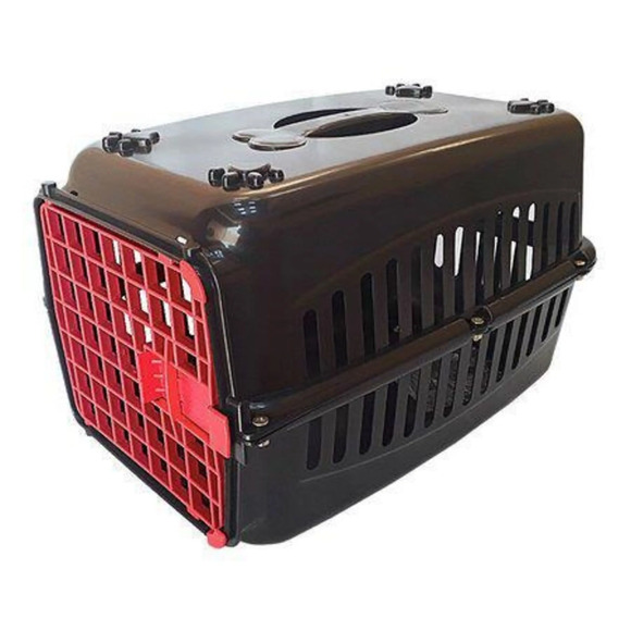 RB Caixa de transporte resistente e durável medidas ideais para o animal sem machucá-Lo ou deixá-Lo mal posicionado.Possui ótima ventilação.Antes de efetuar sua compra verifique se as medidas são adequadas para seu Cão ou Gato.Suporta até 12kg tem alça reforçada porta com trava de segurança..Cor: Preta com Porta VermelhaMEDIDAS: Comprimento 41cm / Largura 27cm / Altura 26cmMedida da porta: altura 22cm / largura 18cmLAVÁVEL: SimMATERIAL: Plástico InjetadoTamanho n.1