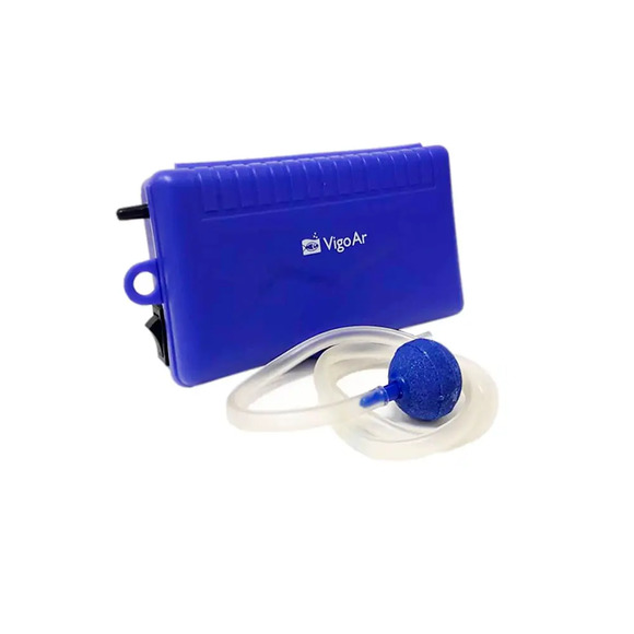 Compressor Vigo Ar à PilhaO Vigo Ar à Pilha foi desenvolvido para suprir a necessidade de oxigênio no transporte de peixes e alevinos iscas vivas e artemias. Também é usado quando há falta de energia em aquários cuja a falta de oxigenação por pouco tempo pode ser fatal.Com apenas uma pilha pequena de 1.5V esse compressor é capaz de funcionar continuamente por mais de 50* horas sendo assim o compressor com melhor desempenho da categoria.*Com pedra porosa nova e coluna da água de 20cm.